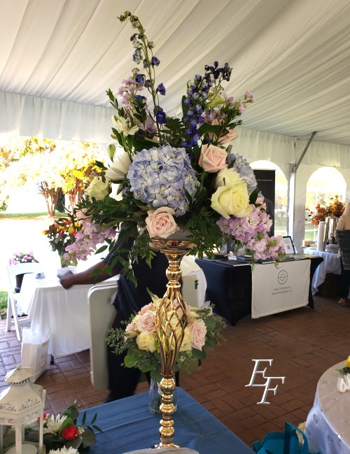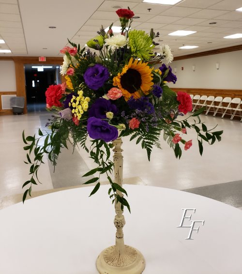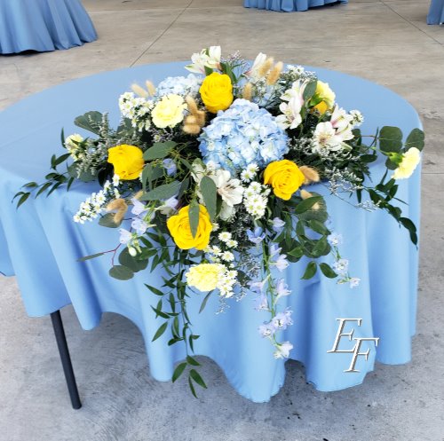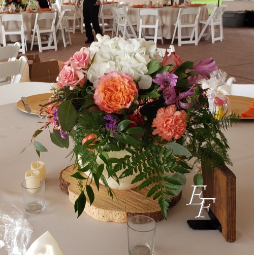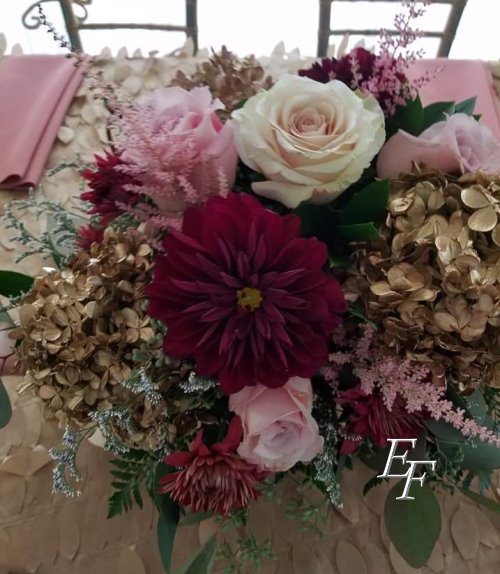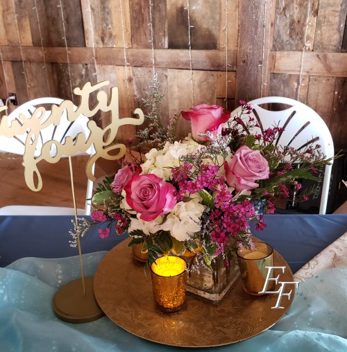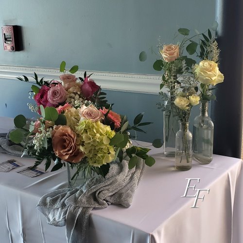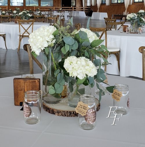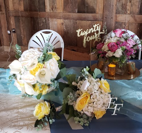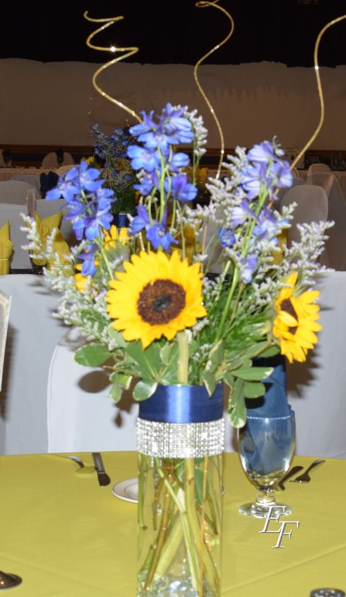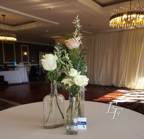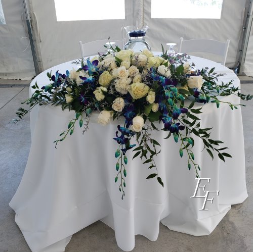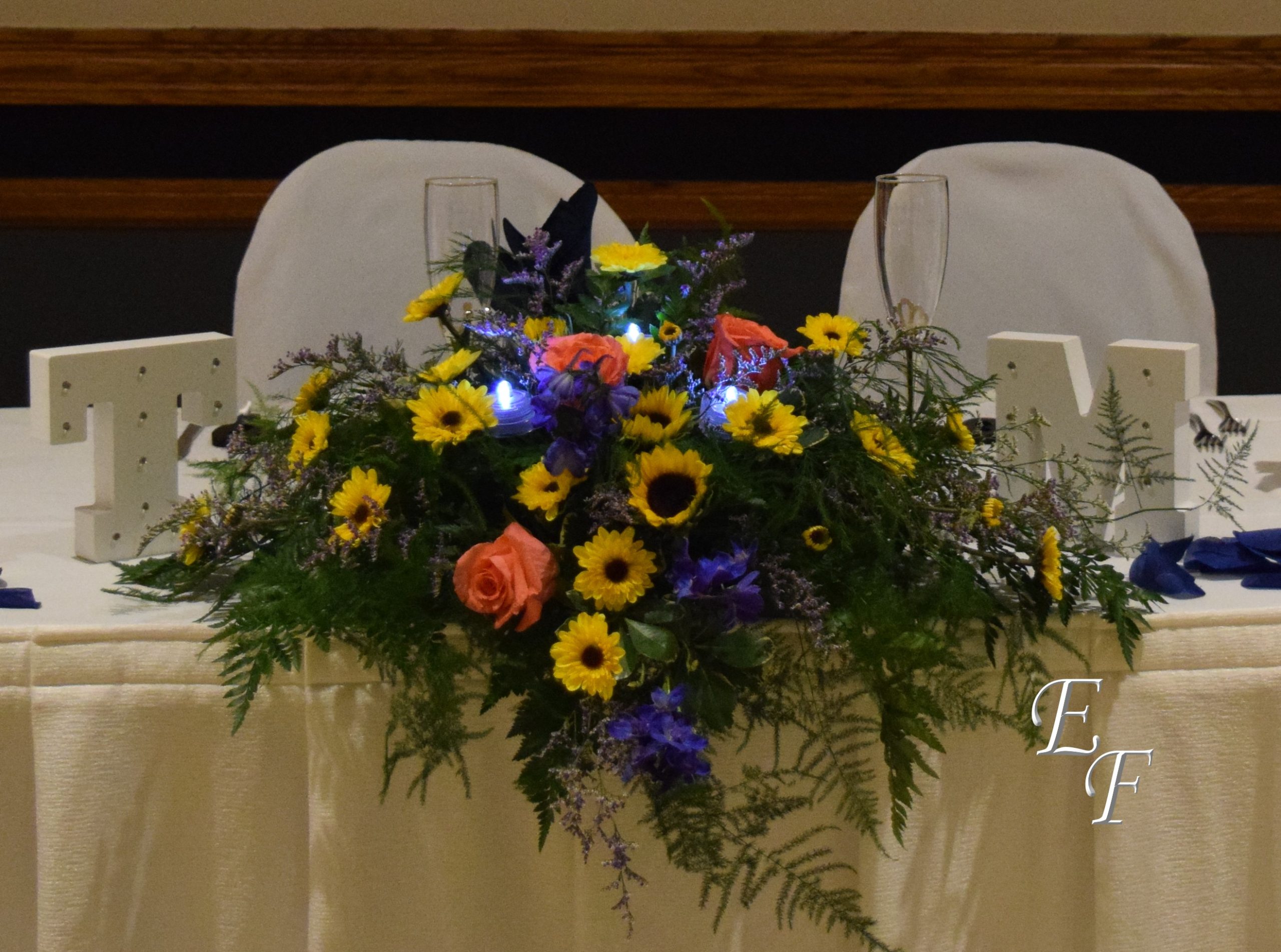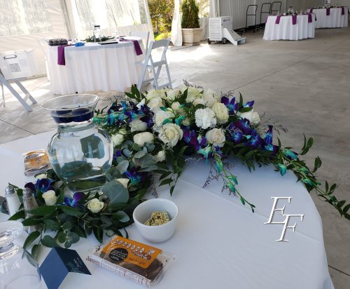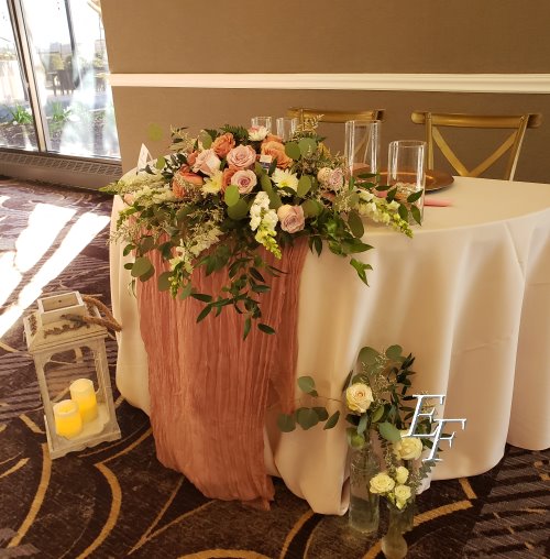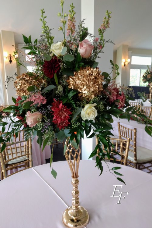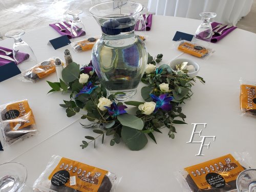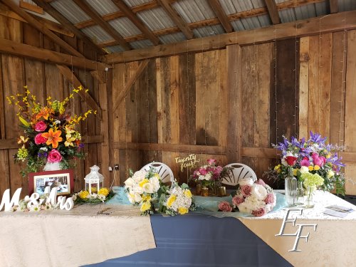 Reception flowers can be simple or elaborate, and should coordinate with your theme. Make use of your ceremony flowers and then fill in. Centerpieces should be a priority. After that, depending upon your budget and taste, you can add flowers to your cake table, memorial table, gift table, buffet, cocktail table and bar.